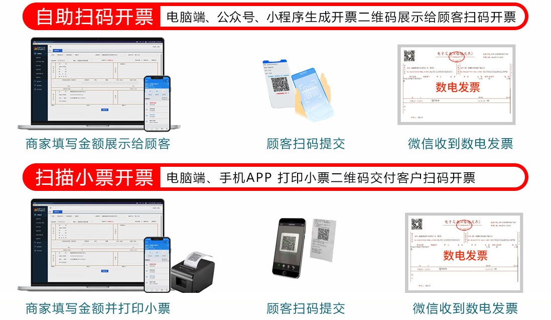 企业已自有系统,通过接口对接,从企业系统数据库中获取开票需要的数据信息,直接完成开票操作。如:订单开票,收银二维码开票、、ERP对接直连开票、电商对接开票、支付开票、企业微信自动开票模式、发票明细清单Excel导入开票、Excel、Txt、XML文件导入批量开票、已开票数据自动回传ERP,发票连续批量打印、电子发票支持批量短信/邮件自动推送,智能匹配税收分类编码